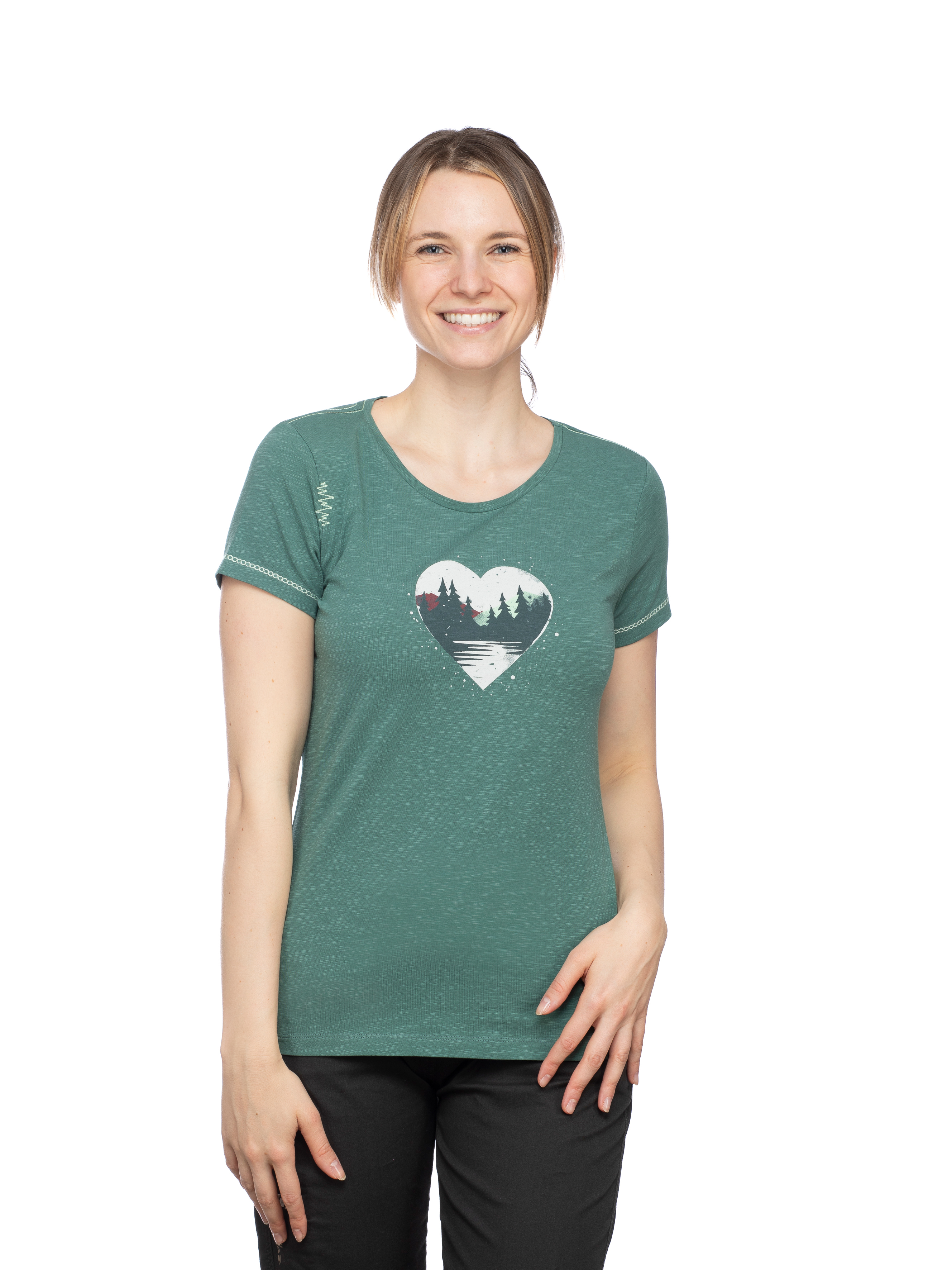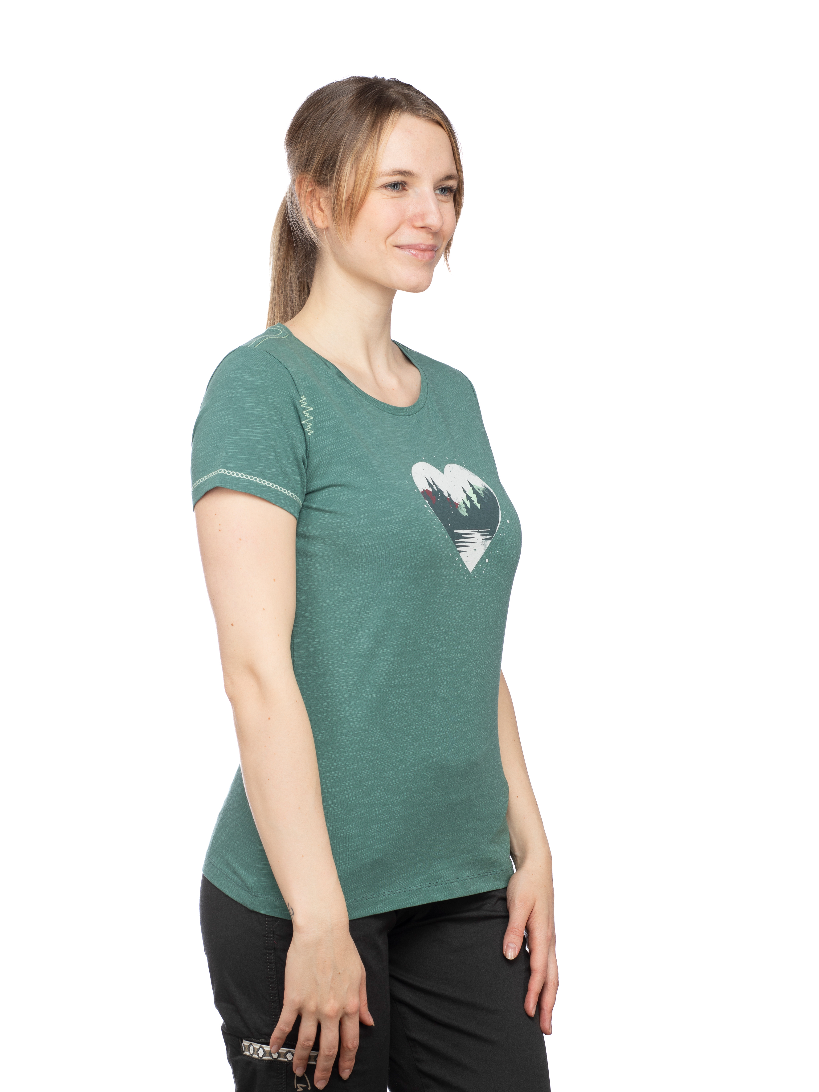 Extras:- Directprint "Mountain Heart"- Nackenprint- Chillaz ZickZack Naht- Flaglabel- Feminine TailleEigenschaften:- Hautfreundlich- Geruchsneutral- Stretch- Leichtes Material- Formbeständig- PflegeleichtThe sustainable, super comfortable Gandia Mountain Heart T-shirt from Chillaz, made in Europe, is the perfect choice for sport and leisure.TENCEL(TM) fibers from Austria in an ecologically and functionally unique fabric blend regulate moisture and inhibit bacterial growth. With a feminine touch thanks to a minimal waist and playful decorative seams. You can feel the quality - see for yourself!