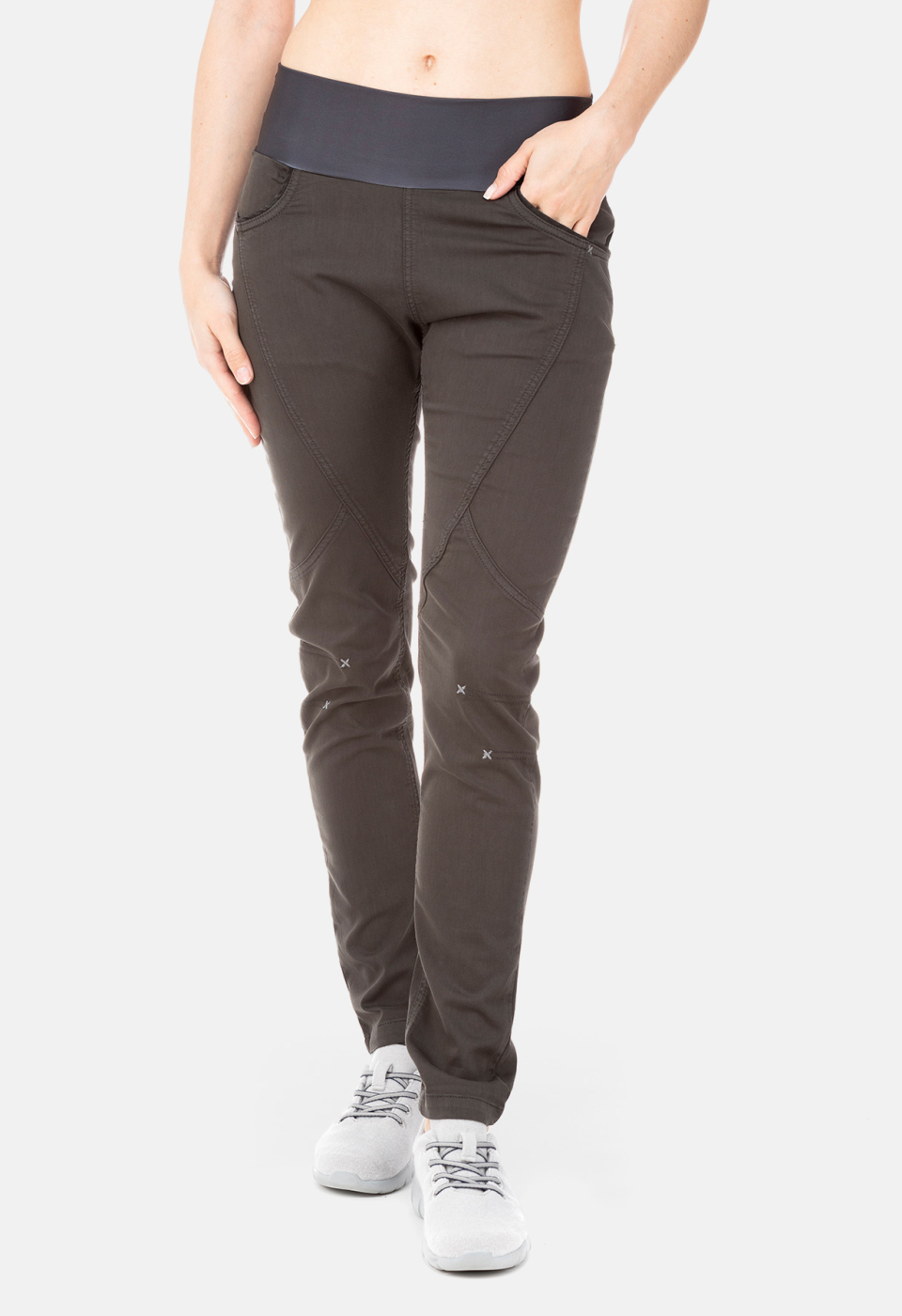 Die Fuji Pant ist die kompromisslose Kletterhose. Beim Klettern bewährte sich einfach der elastische Bund aus Polyamid in der Kombination mit dem sehr robusten und dehnbaren Stoff. Die Schnittführung ist auf gute Beweglichkeit ausgelegt und viele kleine Details wie Drucke und Stickereien machen die Hose zu einem tollen Partner an Fels und Kletterwand!