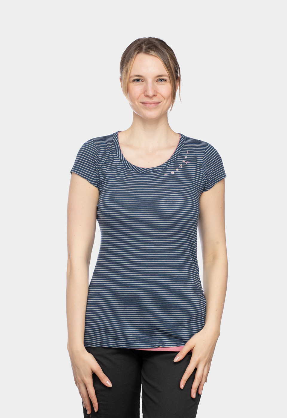 Bestens gerüstet für Sport und Freizeit bist du mit dem nachhaltigen, super bequemen T-Shirt Gandia Chalkbag Flower von Chillaz, made in Europe.TENCEL(TM) Fasern aus Österreich im ökologisch und funktionell einzigartigen Stoffmix regulieren Feuchtigkeit und hemmen Bakterienwuchs. Mit femininer Note dank einer minimalen Taillierung und verspielten Ziernähten. Die Qualität ist spürbar, überzeug dich selbst! Schnitt Besonderheiten:- Rundhalsausschnitt mit schmalem Piping- Kurze Ärmel mit Ziernaht- Eingearbeitete feminine TaillePassform:Regular