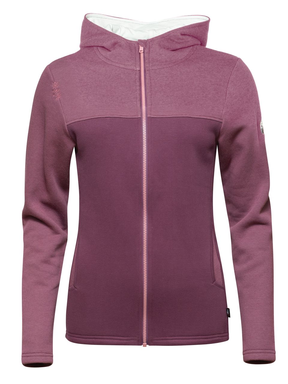Gestricker Stoff mit kuscheliger Fleece Qualität in der KapuzeExtras:- kuschelig aufgeraute Innenseite- Kapuze mit hohem Kragen- Polyamid Bündchen an den Armen- zwei Einschubtaschen vorne- tonaler YKK Reißverschluss, unterlegt mit einer Stoffleiste- dezente Time to Chill Stickerei an der Brust- ZickZack Naht an der SchulterEigenschaften:- Hautfreundlich- Material innen aufgeraut- für kältere Tage- Formbeständig- PflegeleichtThe Gerntal women's jacket is your ideal transition jacket for outdoor activities. The Gerntal, located on Lake Achensee, provides the perfect inspiration for this jacket. Perfect for climbing and hiking, it keeps you warm and looks good. Simple, cozy fabric and a stylish hoodie offer comfort and protection. The patch on the arm with floral and mountain motifs is a highlight. Modern slit pockets and the iconic Chillaz zigzag stitching round off the design.