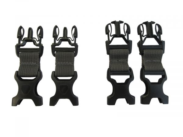 Für alle Rack-Pack Urban Modelle mit seitlich silbernen Alu-Gehäusen. Vier Steckverschlüsse zur Kombination von älteren Rack-Pack Urban Modellen mit Back-Rollern oder Sport-Rollern auf dem Hinterradgepäckträger (außer City Modelle).